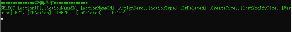 3、建立对应的类文件,SqlSugar支持DBFirst和CodeFirst方式从表生成类文件,或者从类文件生成表。得到TBAction.cs类文件