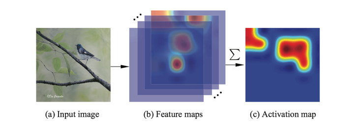 map (HxWx1)。在这张二维图中,可以计算出所有HxW个元素的均值,而此均值m便是该图物体定位的关键:aggregation