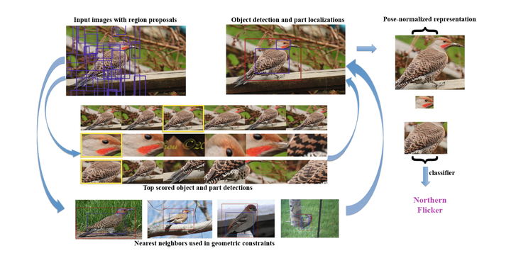 proposal)。之后类似于R-CNN做物体检测的流程,借助细粒度图像中的object bounding box和part