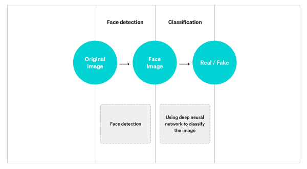 这是基于用CNN(卷积神经网络,这是图像分析中最流行的神经网络)建立的模型。裁剪后的人脸图像被传递到神经网络,然后通过神经层进行处理,以将其分类为真实/假的。