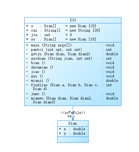 - 在第三次作业的第三题中,我写了一个储存交点的类,并且写了一个功能函数来找交点,