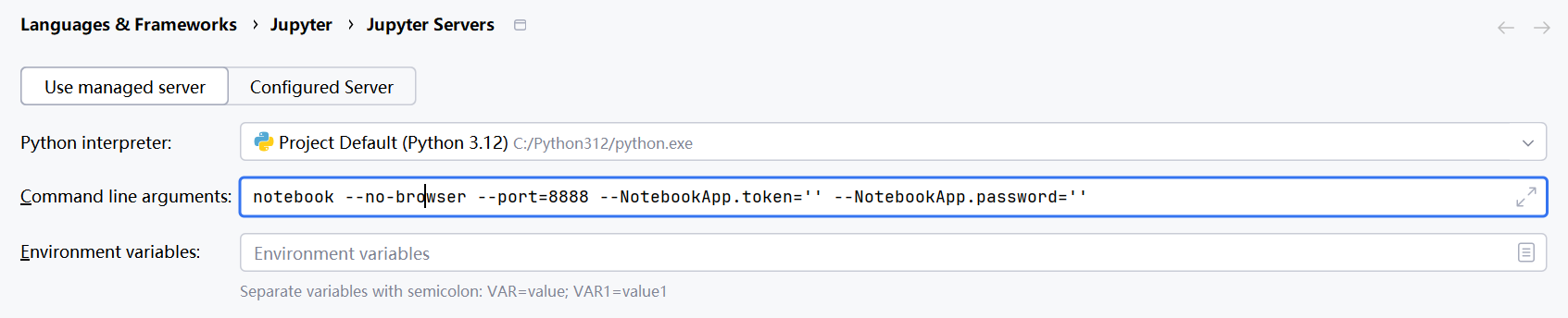 打开:Settings > Languages & Frameworks > Jupyter > Jupyter Servers
