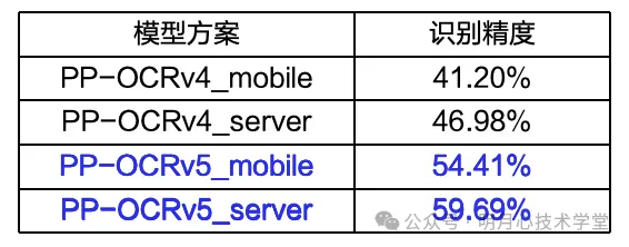 整体识别达到SOTA精度。在业务多场景高难度文字识别评估集上,PP-OCRv5的识别精度达到当前最优,比上一版本PP-OCRv4,识别精度提升13个百分点!