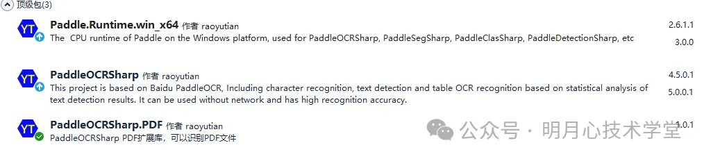 那么如何利用一个方法解决以上几个步骤?PaddleOCRSharp目前增加扩展组件库PaddleOCRSharp.PDF,在nuget上安装PaddleOCRSharp包之后再安装PaddleOCRSharp.PDF包即可。