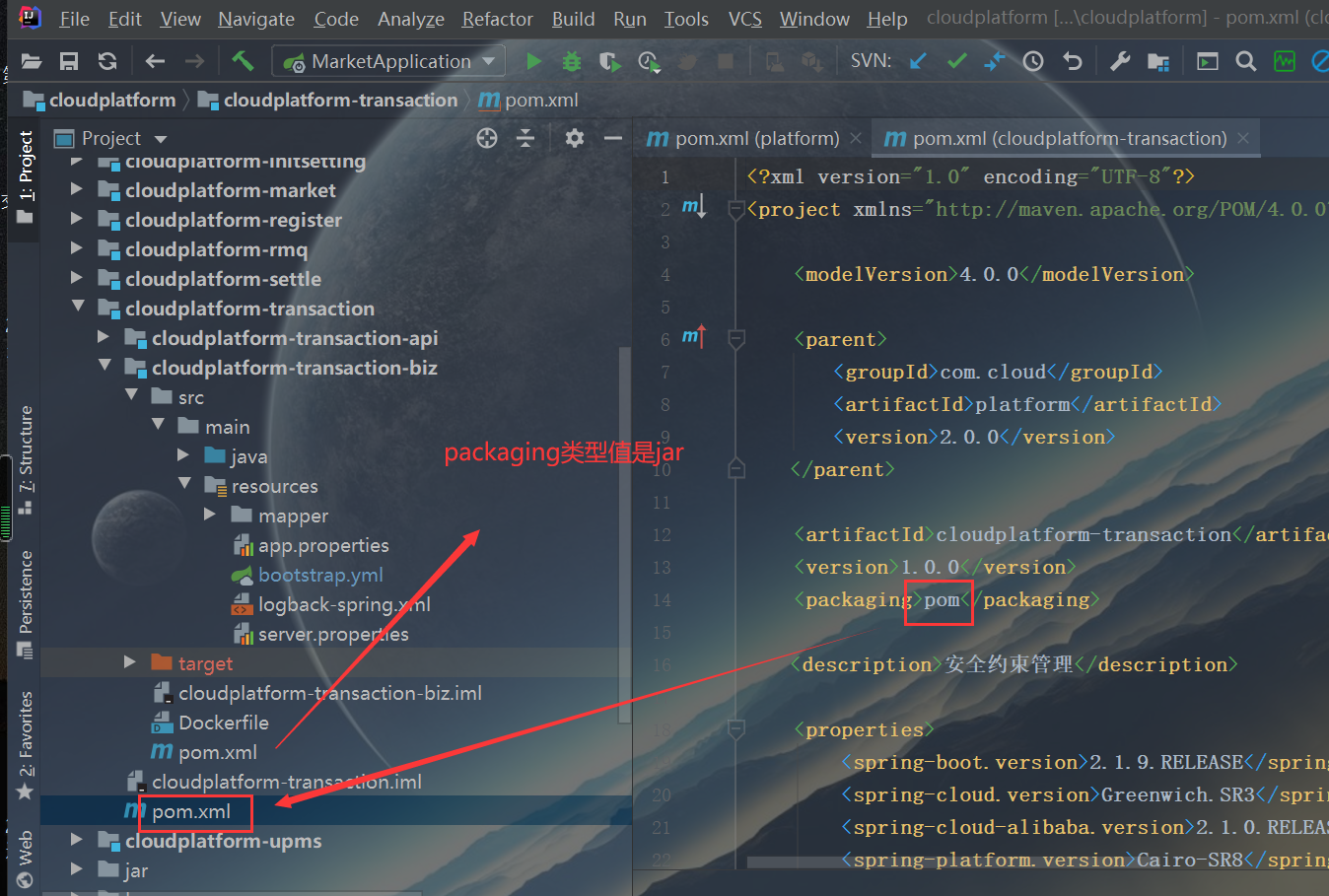 答:你那个pom是父pom,打包父pom会打包下面所有工程,也可以单独打包jar,打包那个就是那个。