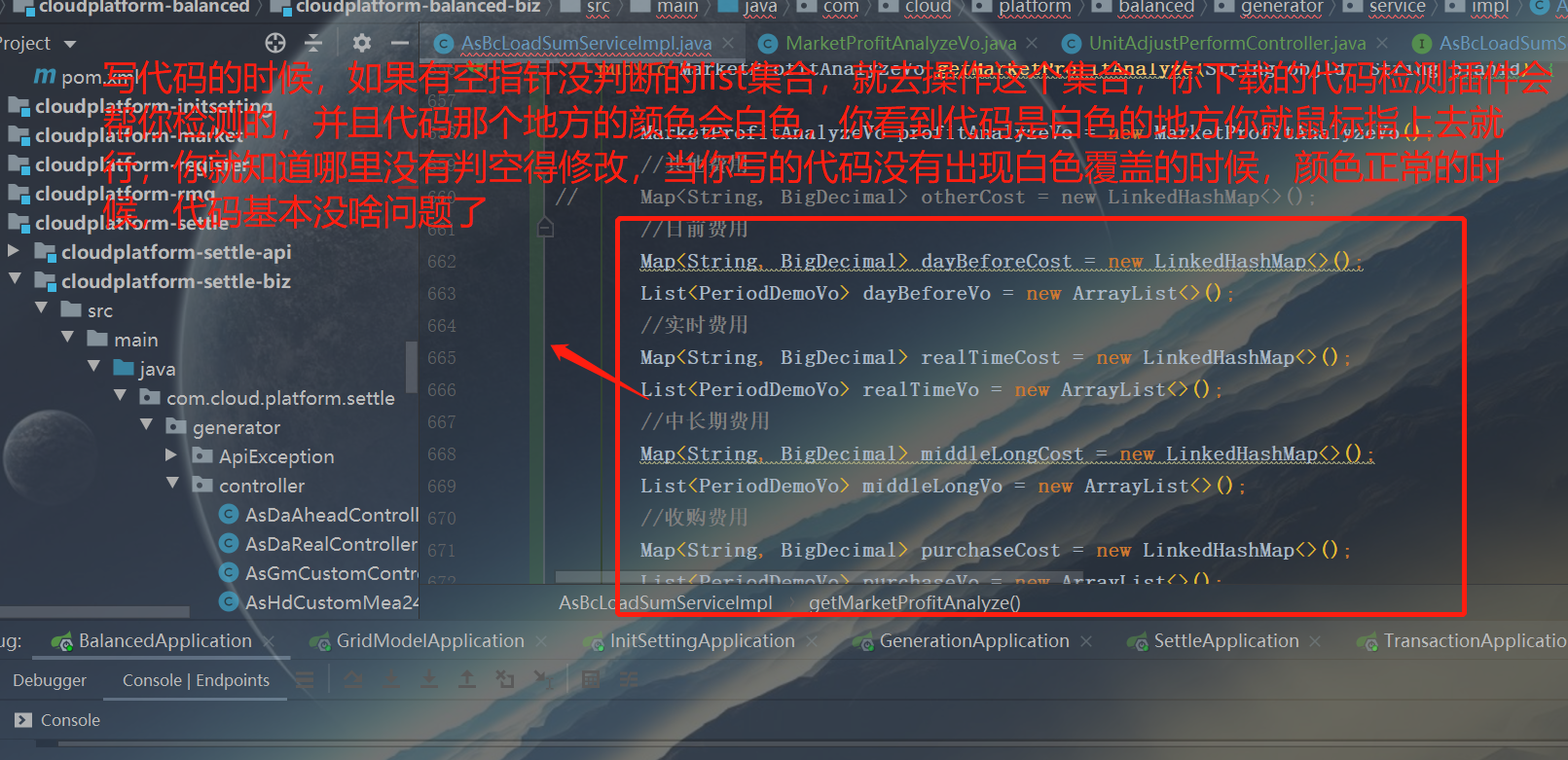 代码出现白色覆盖其实是提示你这里得判空等等操作,当你代码颜色正常的时候,你就代码没啥问题,再去测试功能就行了