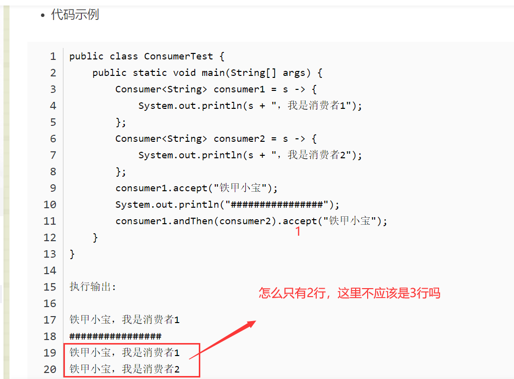 答:他那里二行是对的,两个consumer,执行了执行顺序,然后指定调用参数。