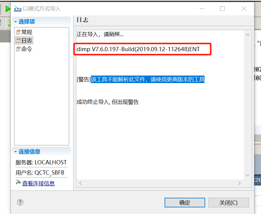 从达梦数据库导出数据库 到本地想在本地导入数据库提示数据库版本过高