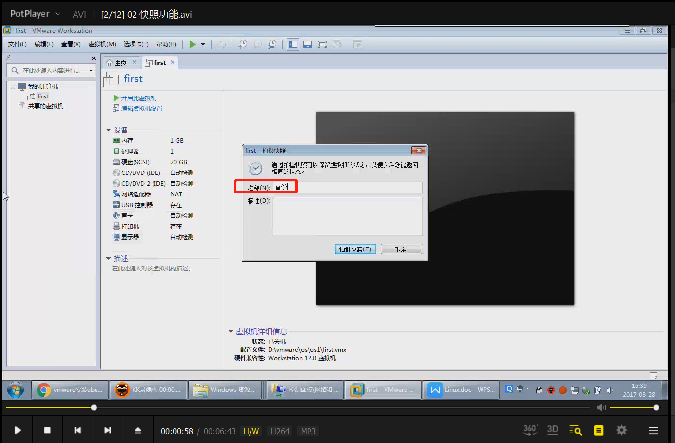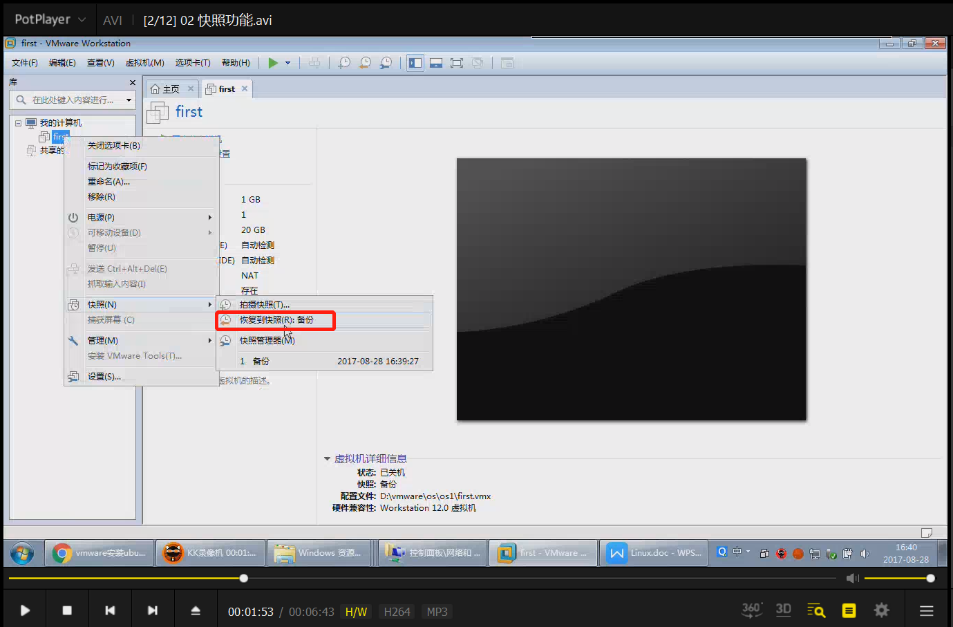 5.选择恢复到快照,相当于电脑的一键恢复,一键还原