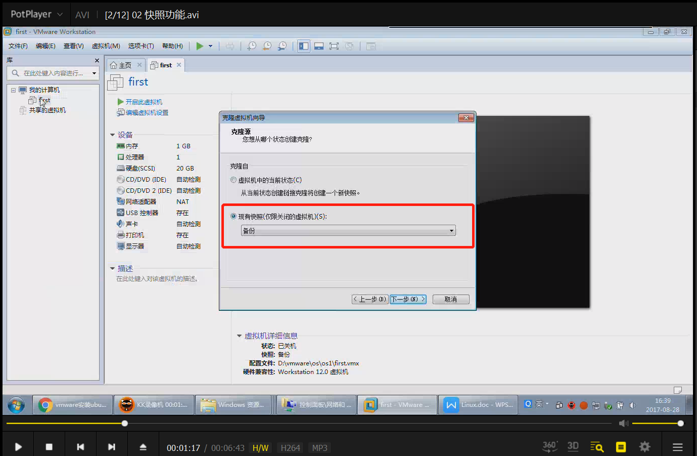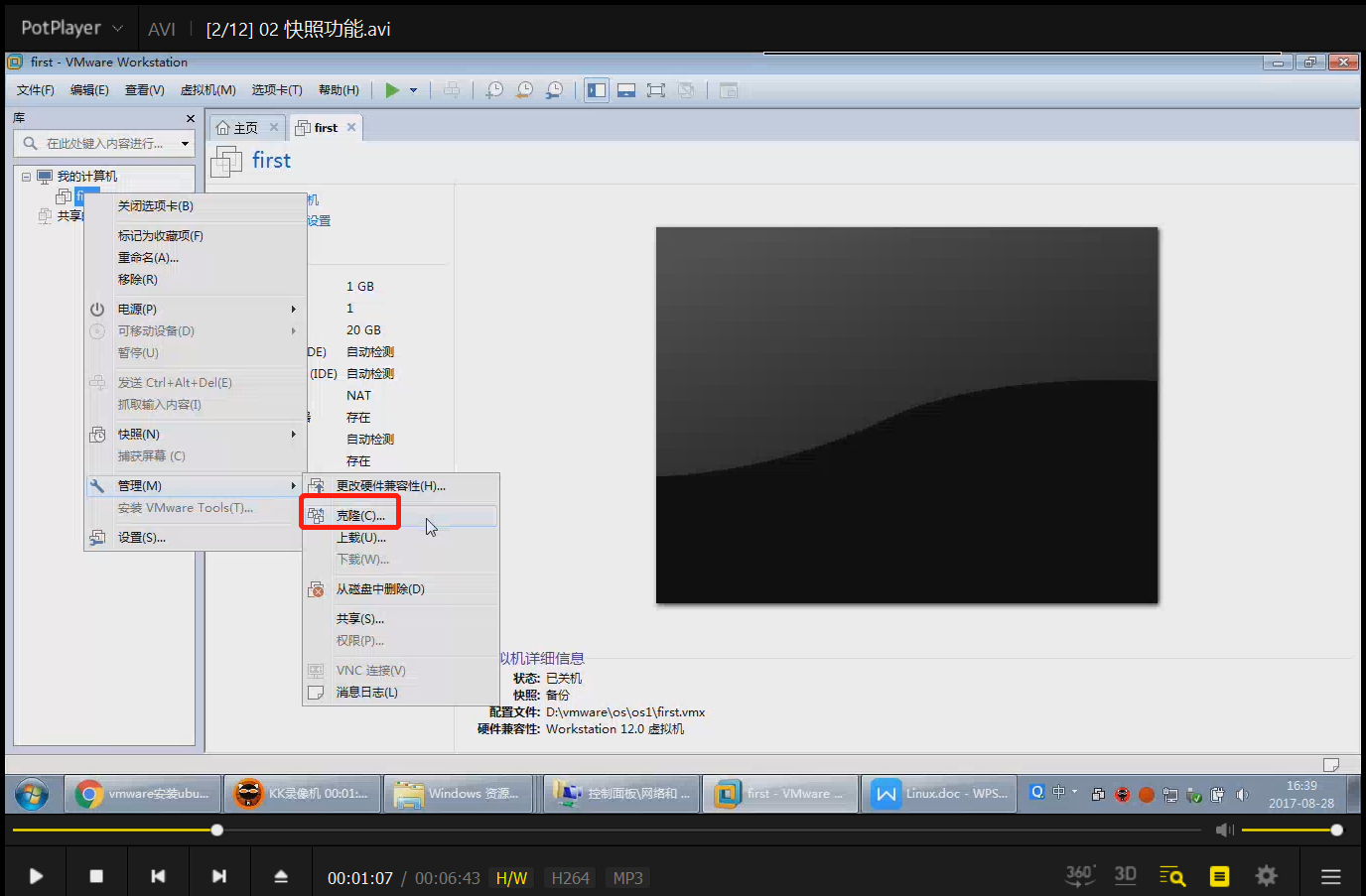 3.经过上面二个步骤的操作后(已经快照完后才能点击克隆)