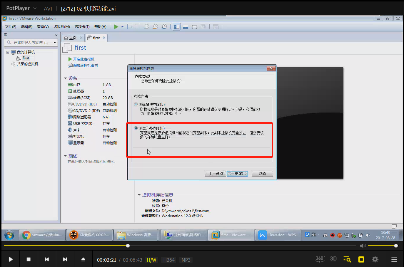 6.从第四步开始,点击下一步后,点击创建完整克隆