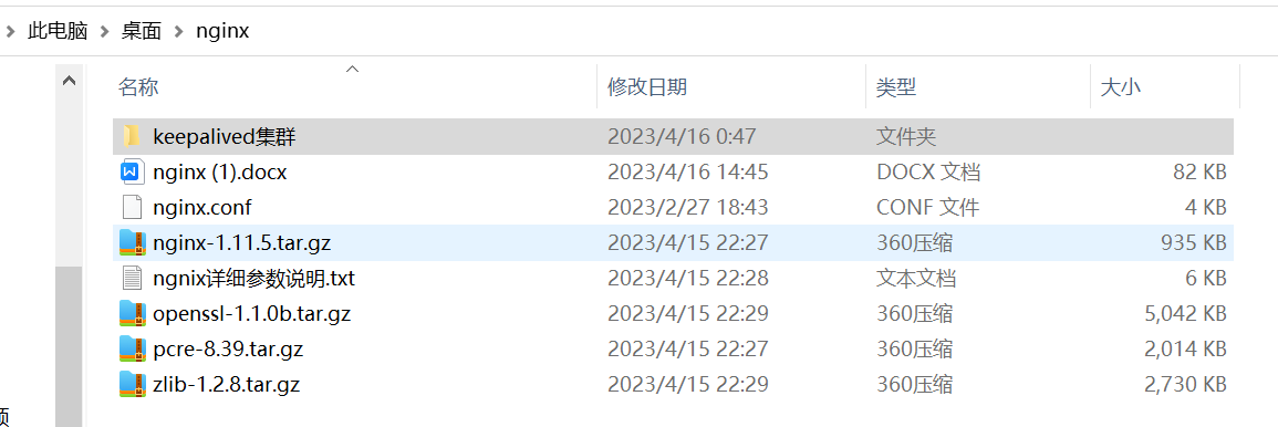 上传nginx-1.11.5.tar.gz 、zlib-1.2.8.tar.gz、openssl-1.1.0b.tar.gz、pcre-8.39.tar.gz
