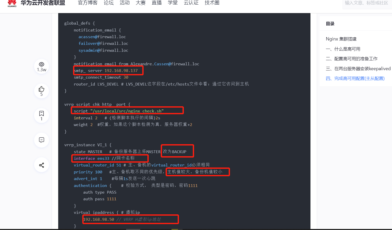 (按照第五步的链接部署nginx主从得注意2个点,就是第五步的链接文档中的主备用的keepalived.conf用板凳哥压缩包里面的主备用的keepalived.conf,并且