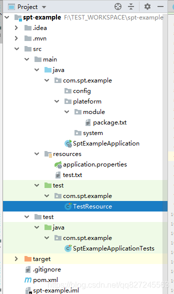 * 当测试类在 com.spt.example 下