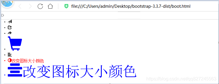 <span class="glyphicon glyphicon-align-center"style="color:blue;font-size:50px;">改变图标大小颜色</span>