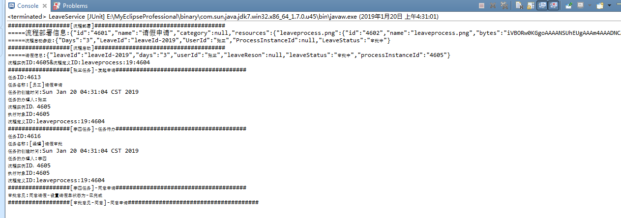 System.out.println("审批意见:"+"同意请假-设置请假单状态为-已完成");
