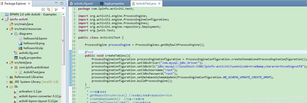 二.初始化activit5框架的表 执行测试类里的createTables方法