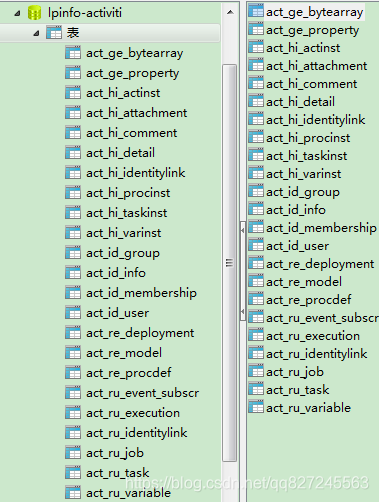 Ø activity:保存所有的流程实例、任务、活动信息;