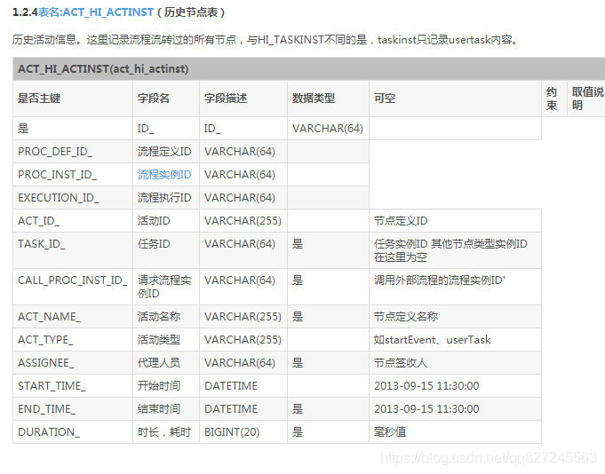 | 历史记录 | ACT_HI_ACTINST | 历史的流程实例 |