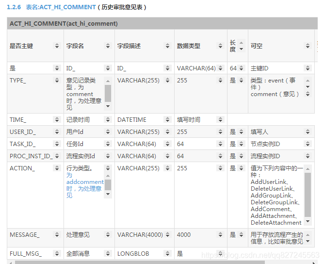 | ACT_HI_COMMENT | 历史的说明性信息 | |