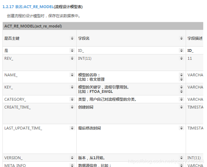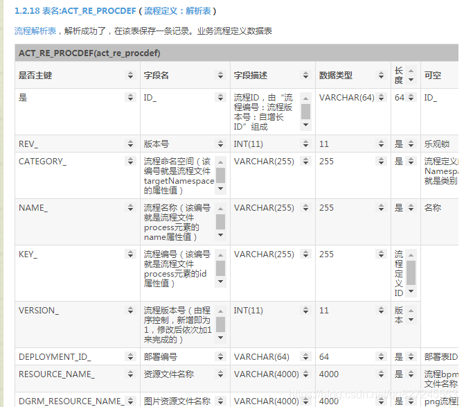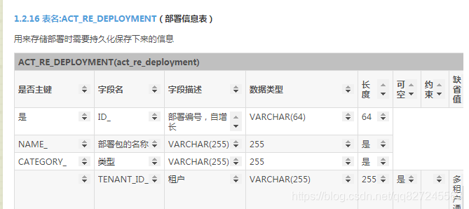 | 流程定义 | ACT_RE_DEPLOYMENT | 部署单元信息 |