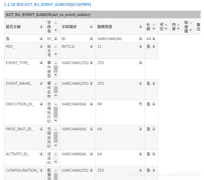 | 运行实例 | ACT_RU_EVENT_SUBSCR | 运行时事件 |