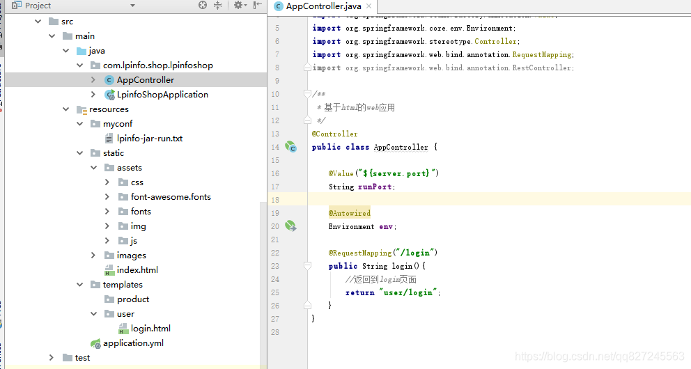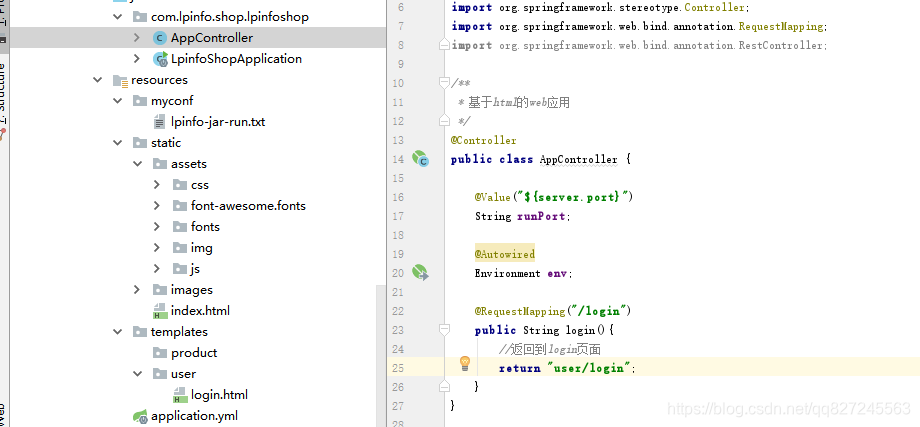 (3)templates目录里面存放着程序应用的页面 比如从index页面点击登录请求到控制层转发到登录页面