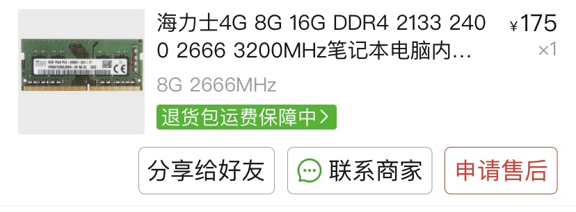 我买的是hynix 8G DDR4 2666MHz的(PDD买的)。和本身自带的一样。