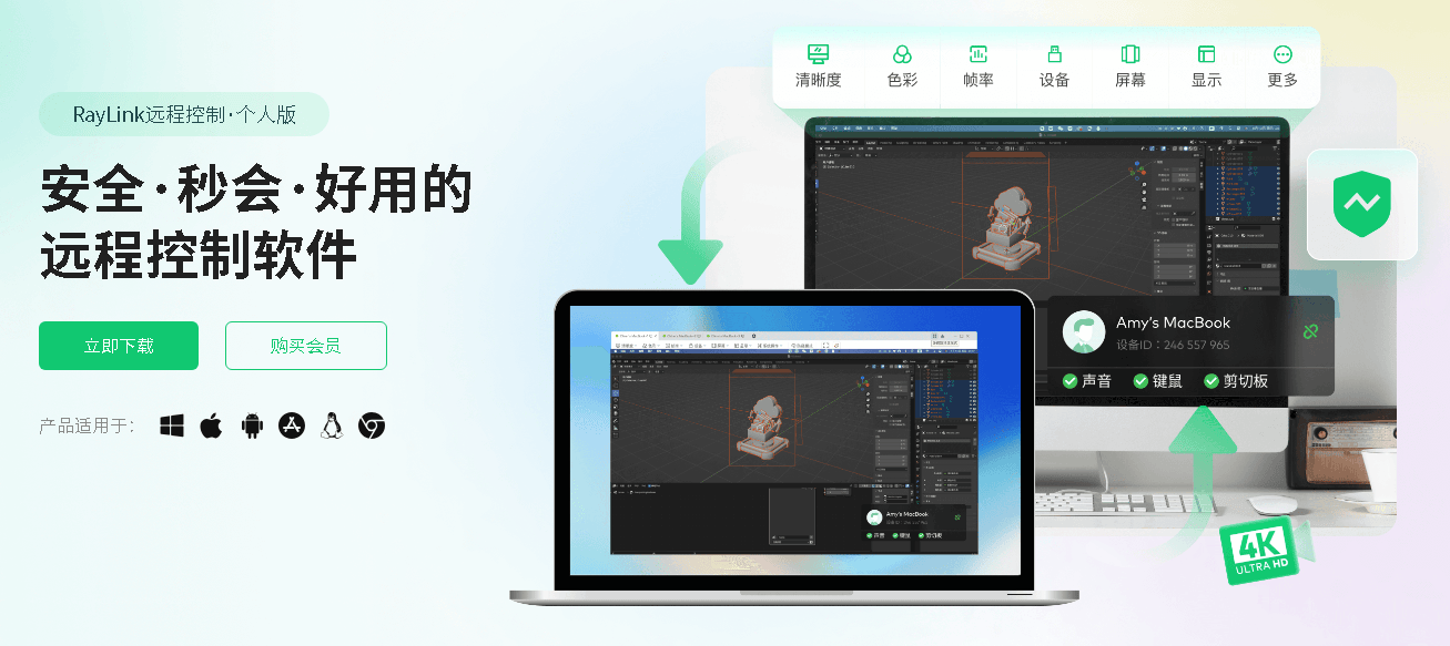 - 视觉盛宴:高清画质呈现:RayLink不仅支持高清画质的实时传输,更在细节上精益求精,无论是处理细腻的文档文字,还是进行复杂的图形设计工作,都能确保画面清晰细腻,满足您对高品质视觉体验的追求。