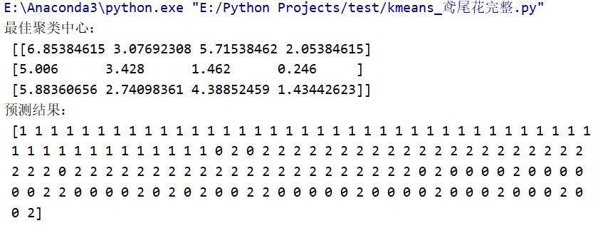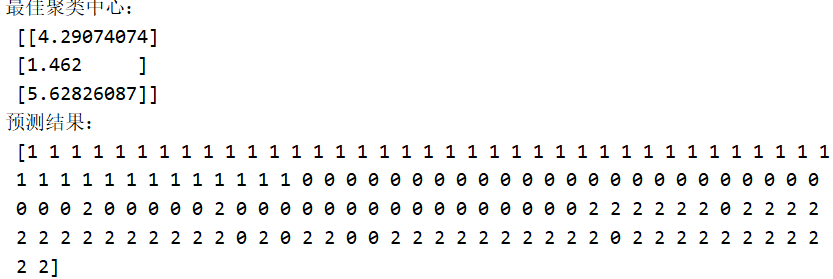 print("最佳聚类中心:\n",kc,"\n预测结果:\n",y_kmeans)