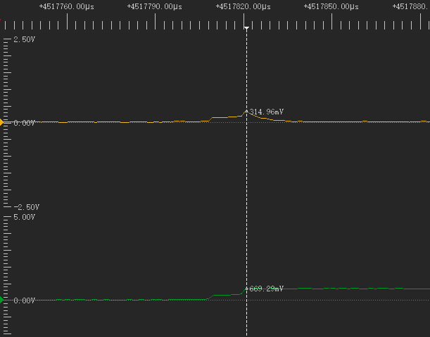 1,上电后,三极管Q1 Q2从0V开始上涨;