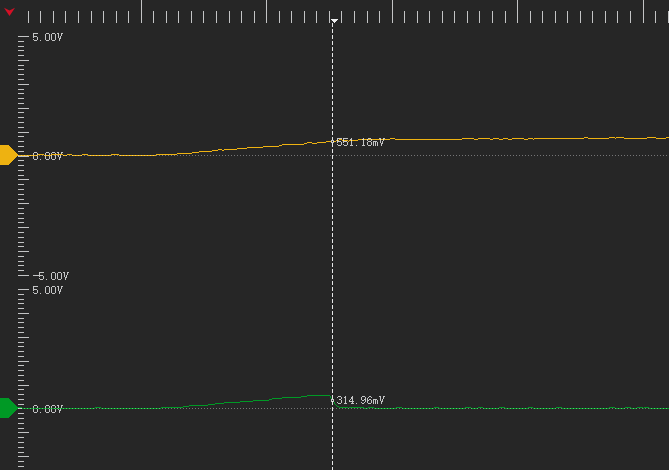 2,搭环境,示波器监控两个三极管的基极。Q1基极为绿色波形;Q2基极为黄色波形;