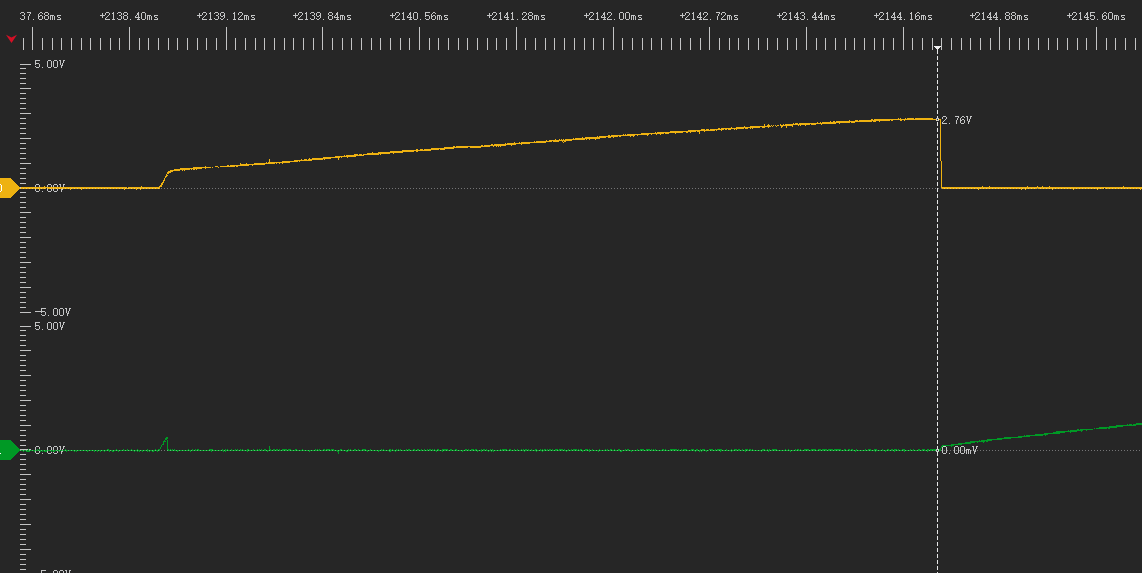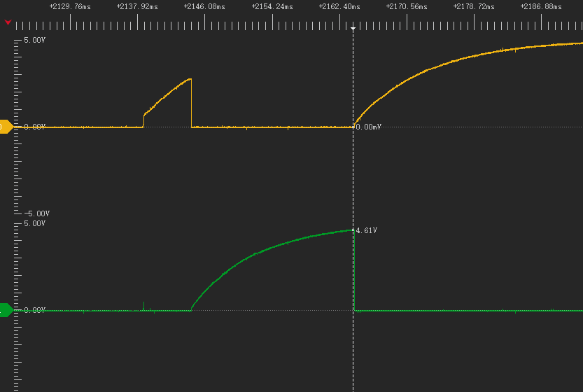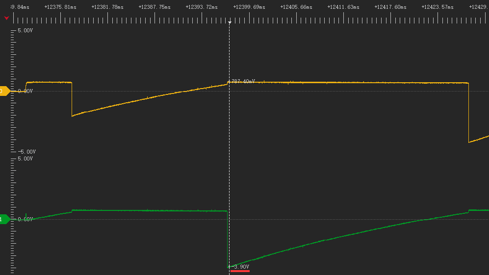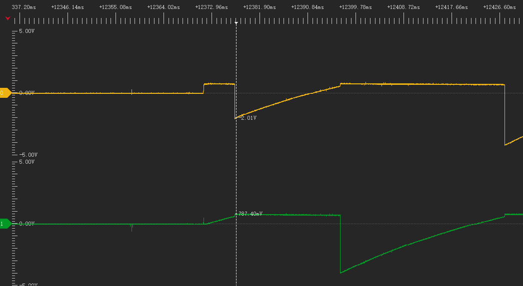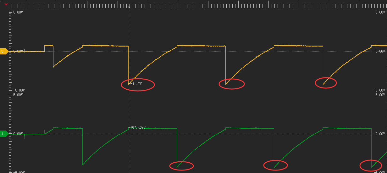2.4 后续两个三极管轮流导通。电容电压均为-4.3V左右。电容正极从+5V变为0V。