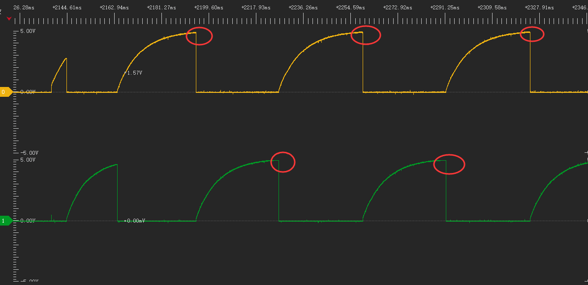 3.3 后续轮流输出接近5V电源电压。呈方波波形。