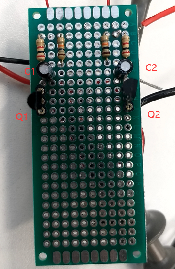 3.1 初始上电后,电容正极和三极管基极一起升高,C2的正极持续充电。C2的正极电压为2.76V时刻,因Q2导通对地短路,降到0V。
