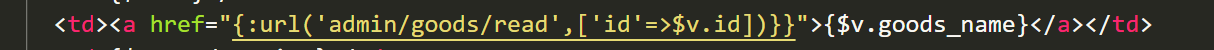 goods首页 商品名称加了跳转到详情页面 传个id参数,当前商品$v.id赋值给id,传到read方法中去