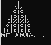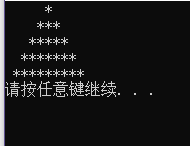 // 类graph的实现 #include "graph.h" #include <iostream> using namespace std; // 带参数的构造函数的实现 Graph::Graph(char ch, int n): symbol(ch), size(n) { } // 成员函数draw()的实现 // 功能:绘制size行,显示字符为symbol的指定图形样式 void Graph::draw() { int i,j,k; for( i=0;i<size;i++) { for( j=0;j<=size-i;j++) cout<<" "; for( k=0;k<2*i-1;k++) cout<<symbol; cout<<endl; } }