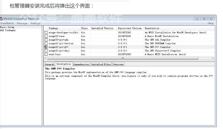 找到mingw32-gcc-g++(注意class属性要为bin),右键点击Mark for Installation。