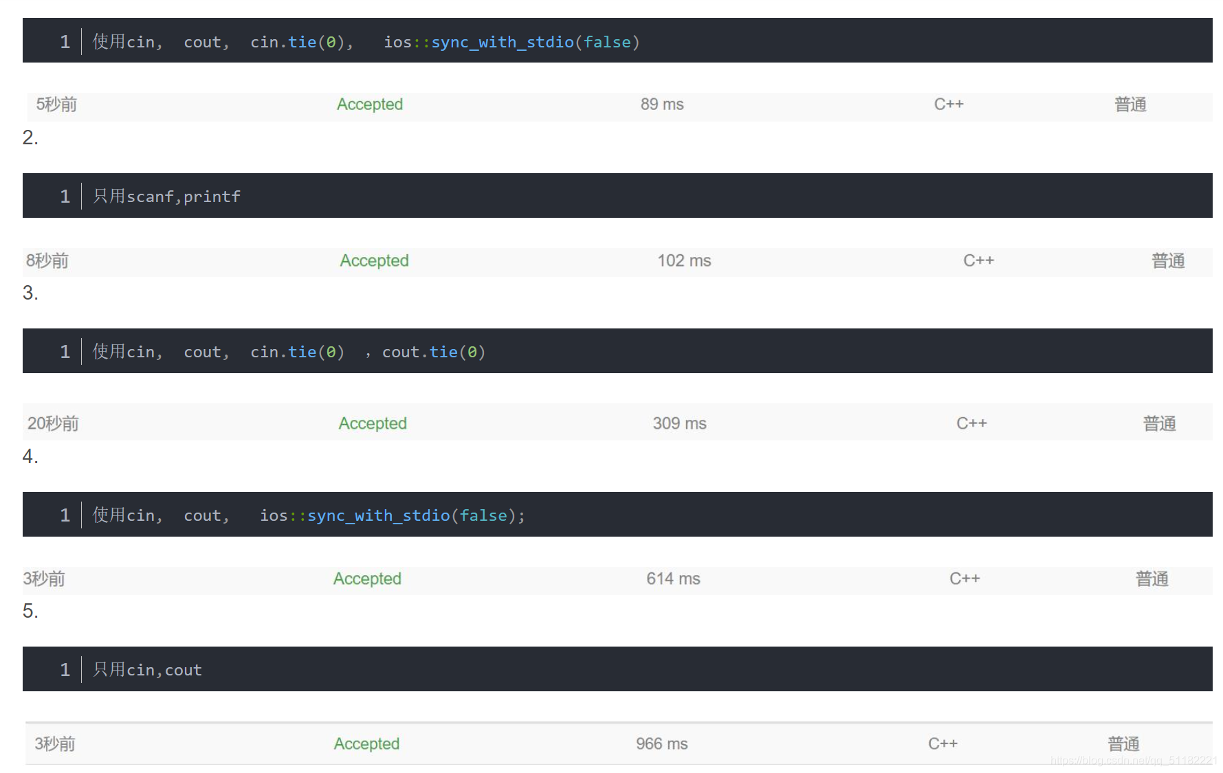 2.ios::sync_with_stdio(false)、cin.tie(0)