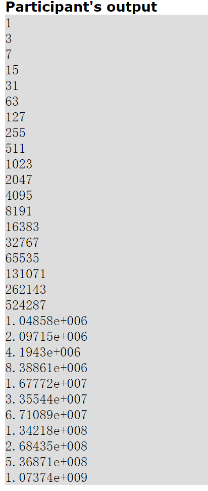 不能直接用\(pow(2,n)\)输出答案!!,因为当结果较大时会自动输出浮点数的形式