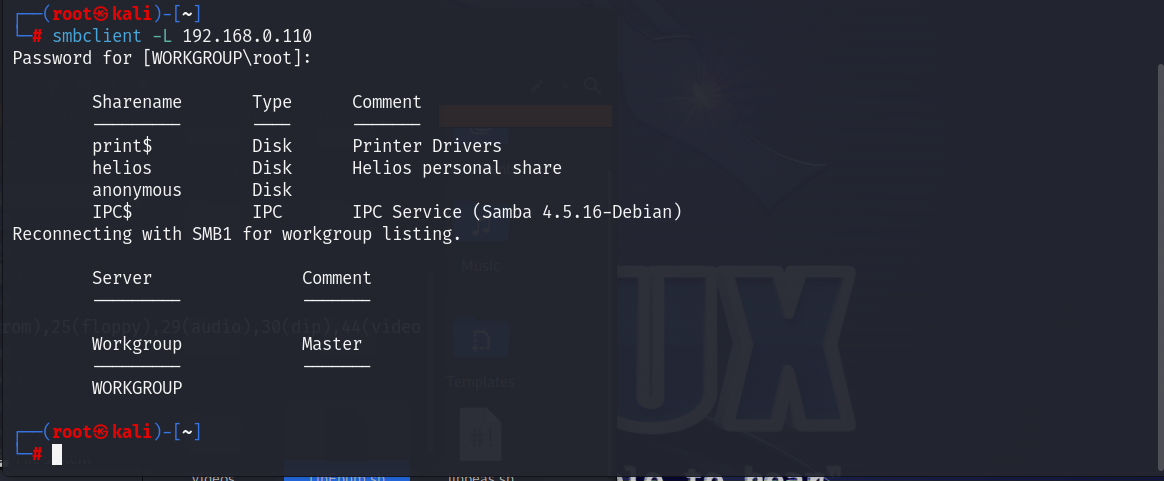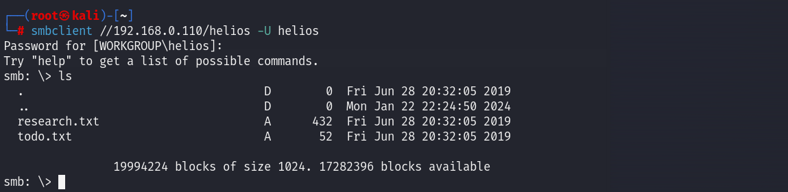 给了三个密码,发现qwerty是helios的密码,smb连接helios用户