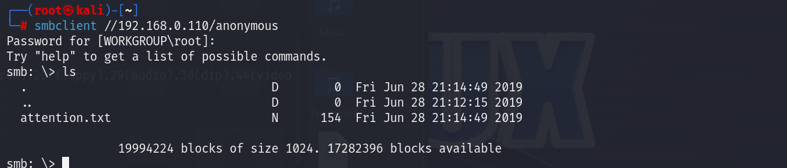 smbclient -L 192.168.0.110 -L:显示服务器端所分享出来的所有资源