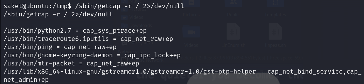 /sbin/getcap -r / 2>/dev/null
