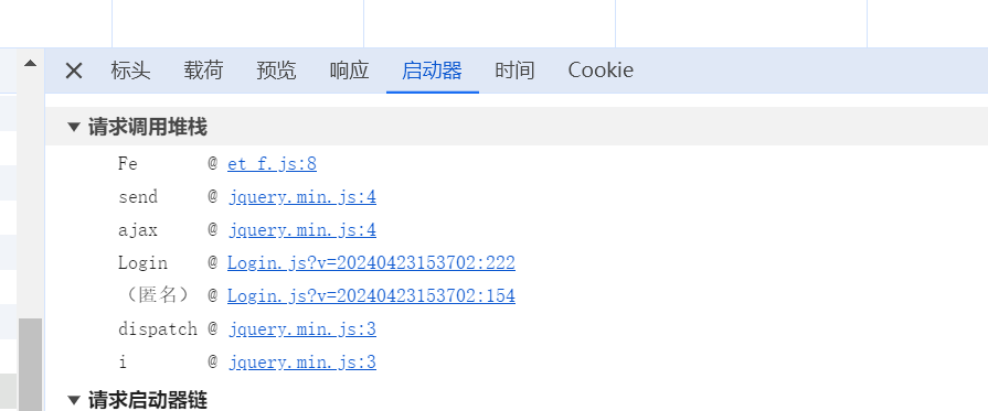 在启动器处可以查看调用堆栈,这个登录请求,大致分析是处在中间位置发生了加密,所以跟一下 Login