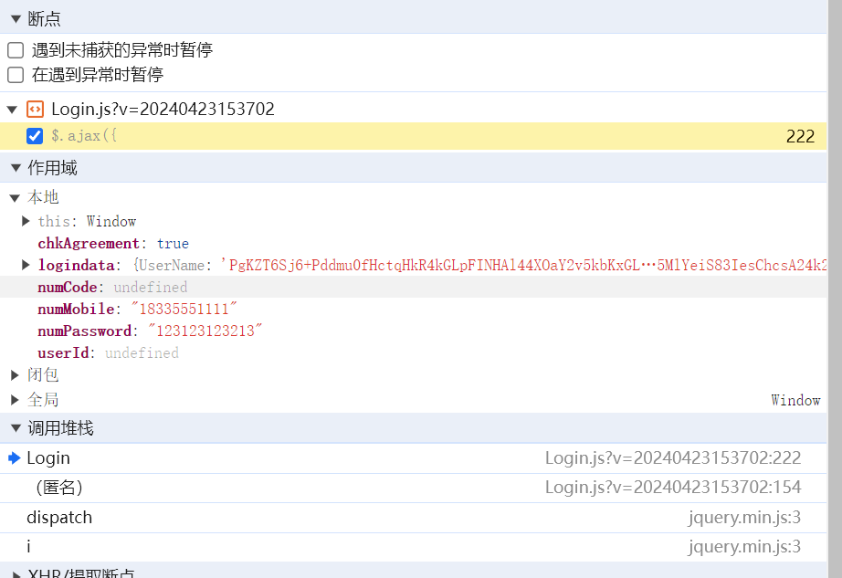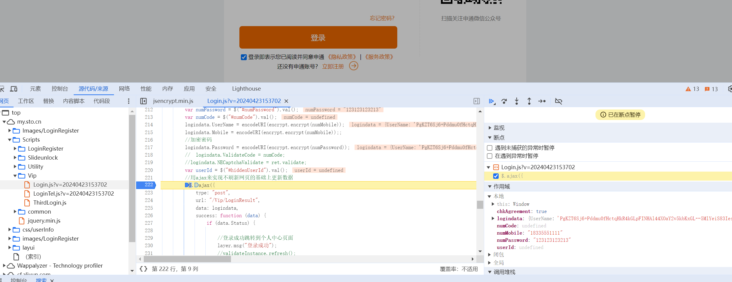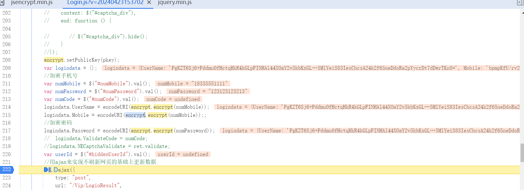 发现加密数据是在Login处有,匿名处没有,所以加密代码可能就处在这个之间,之后看js源码