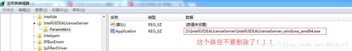 进入Parameters后,在右侧窗口里新建一个命名为Application的字符串值,字符串的值就是程序的路径,这个路径不要删除