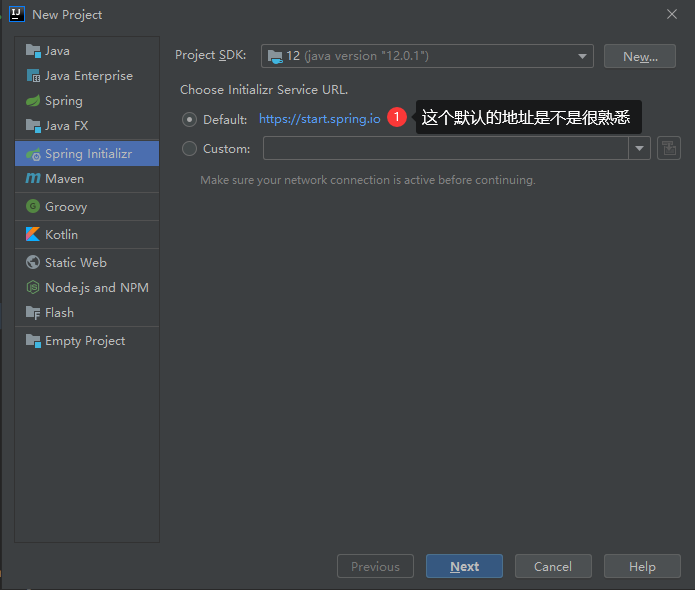 在IDEA中直接创建项目,选中【Spring Initializr】可以发现这个其实就是IDEA直接连接到https://start.spring.io/ 网站。