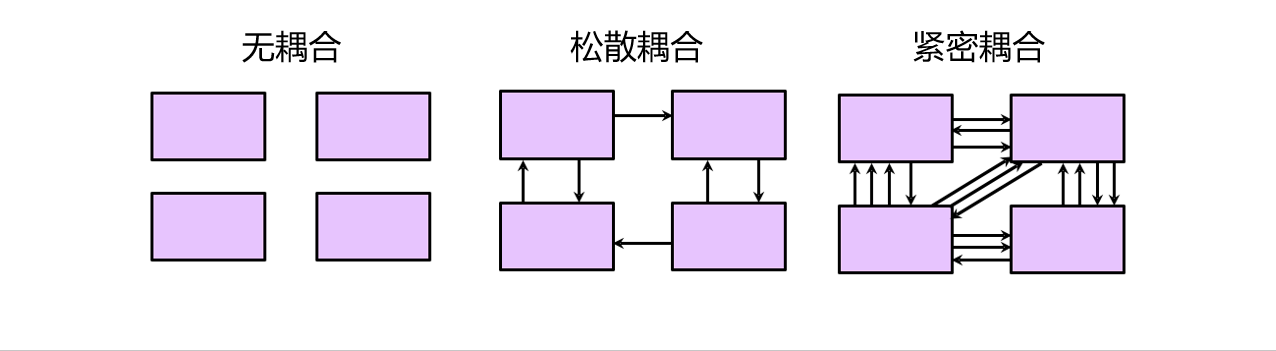 耦合度是指软件模块之间的依赖程度,一般可以分为紧密耦合、松散耦合和无耦合。一般在软件设计中我们追求松散耦合。