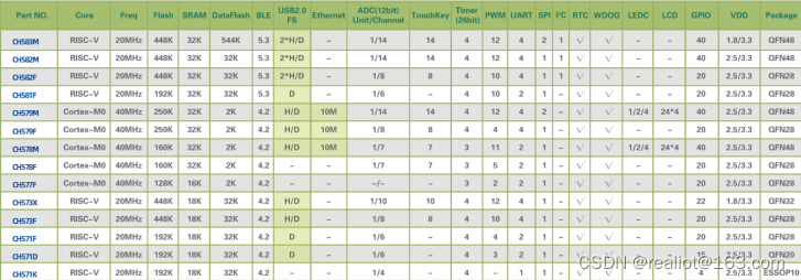 CH571/CH573/CH578/CH579等芯片同属一个系列,但是又各有特点,各个芯片的具体特性可参考沁恒官网中MCU的选型页: