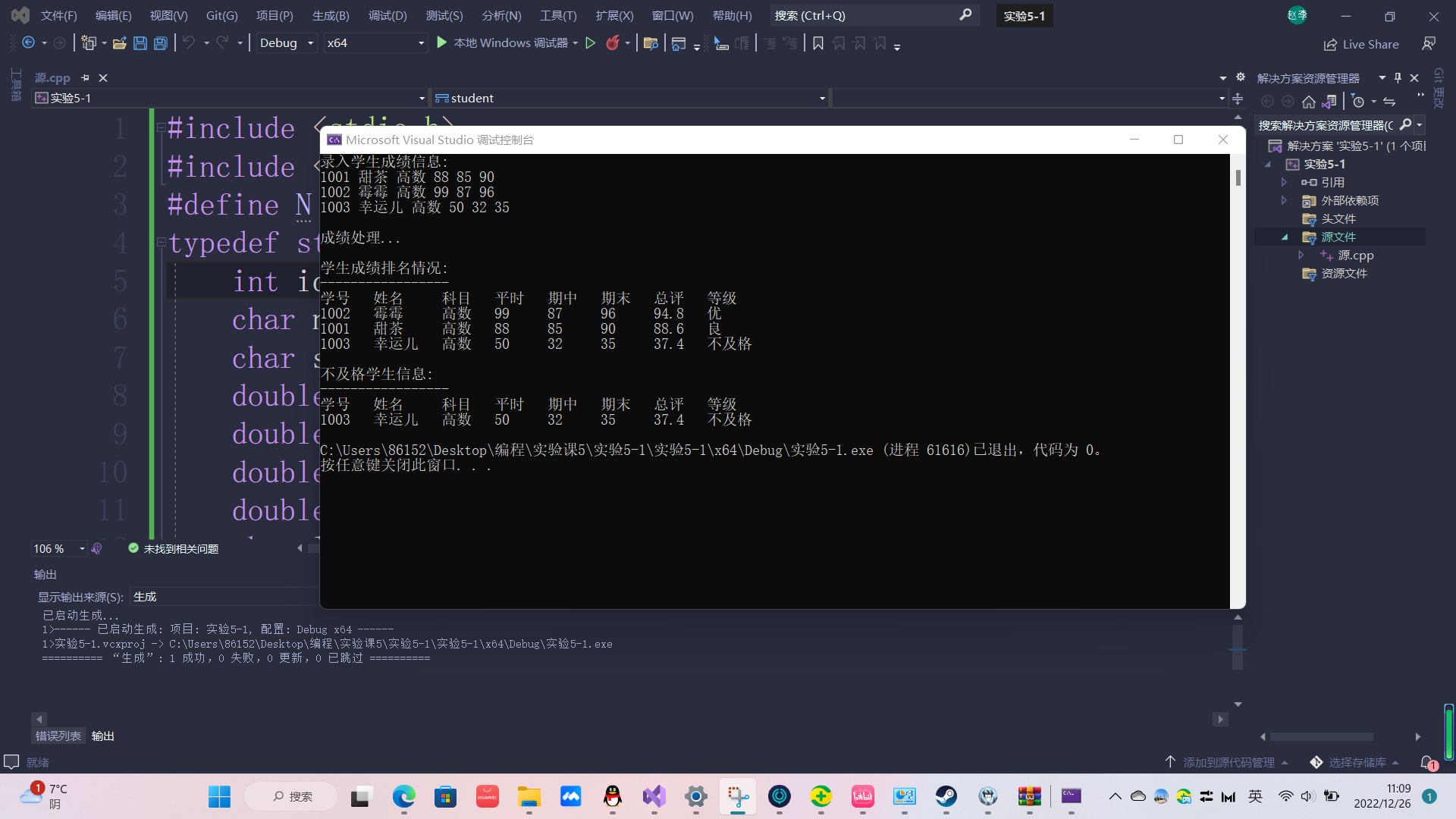 STU st[N], fst[N]; // 数组st记录学生信息,fst记录不及格学生信息